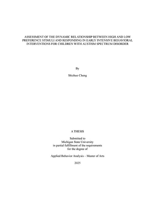 ASSESSMENT OF THE DYNAMIC RELATIONSHIP BETWEEN HIGH AND LOW PREFERENCE STIMULI AND RESPONDING IN EARLY INTENSIVE BEHAVIORAL INTERVENTIONS FOR CHILDREN WITH AUTISM SPECTRUM DISORDER