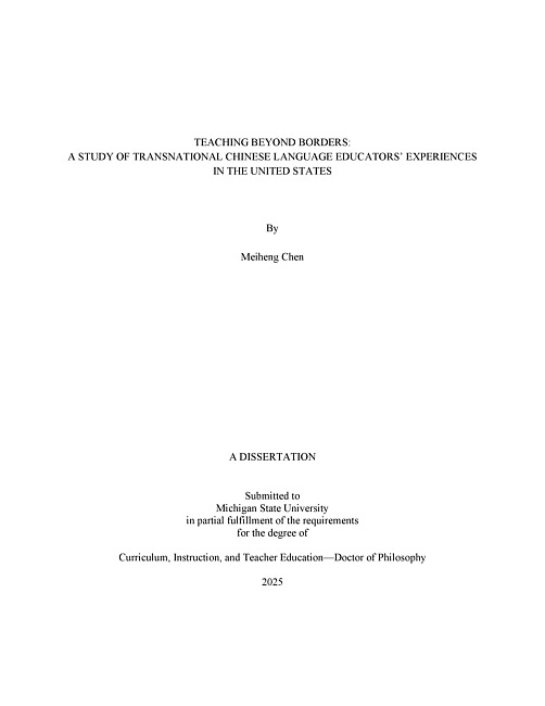 Teaching Beyond Borders : A study of transnational Chinese language educators' experiences in the United States