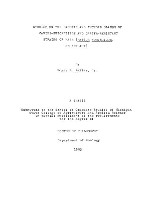 Studies on the parotid and thyroid glands of caries-susceptible and caries resistant strains of rats (Rattus norvegicus, Berkenhaut)