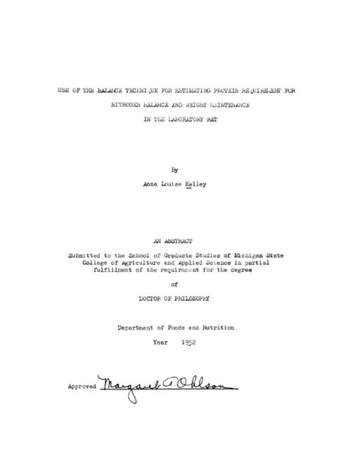Use of the balance technique for estimating protein requirement for nitrogen balance and weight maintenance in the laboratory rat