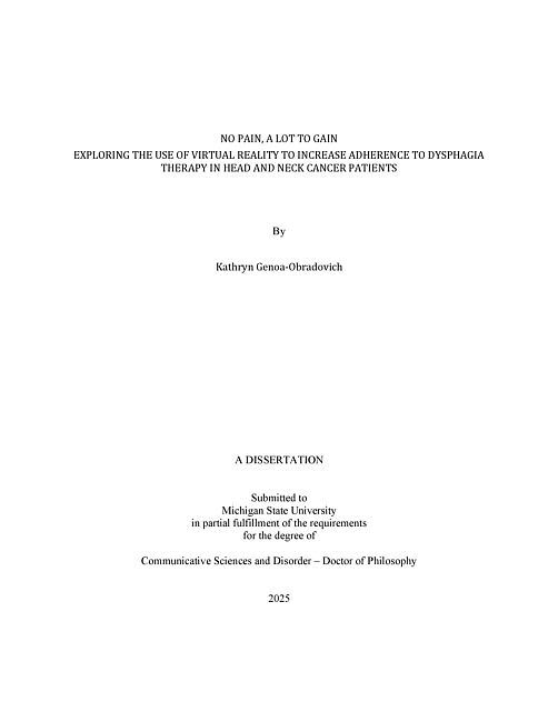 No Pain, A Lot to Gain : Exploring the Use of Virtual Reality to Increase Adherence to Dysphagia Therapy in Head and Neck Cancer Patients