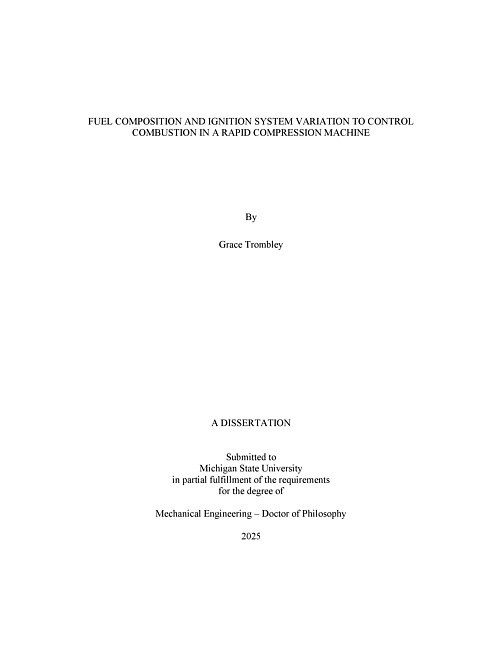 FUEL COMPOSITION AND IGNITION SYSTEM VARIATION TO CONTROL COMBUSTION IN A RAPID COMPRESSION MACHINE
