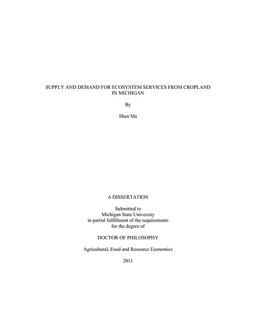 Payment-for-Environmental-Services (PES) programs that translate external ecosystem values into direct financial incentives for local providers are gaining appeal globally as flexible approaches to inducing the voluntary provision of ecosystem services (ES). Working land PES programs that promote conservation in the agricultural production process have great potential to address the challenge of feeding growing global population while maintaining environmental sustainability. The importance of working land PES programs calls for efficient and effective design of public policies that facilitate the voluntary provision of ES. However, the design of current PES programs is rarely based upon a comprehensive understanding of the underlying supply and demand for ecosystem services. This dissertation thus aims to provide empirical insights for PES design by combining a supply-side cost function of farmers' willingness to adopt practices that provide enhanced ES with a demand-side social benefit function of residents' willingness to pay (WTP) for these ES. This dissertation is comprised of three essays. Essay 1 investigates the farmer supply of ecosystem services via four hypothetical PES programs using a stated preference survey of 3000 Michigan corn and soybean farmers. This essay complements existing literature by dividing the decision on whether to enroll in PES programs into two stages: whether even to consider enrolling in the program and, if yes, whether to participate. Analyzed using a double-hurdle econometric model, results suggest the first-stage willingness to consider decision chiefly depends on farm and farmer characteristics, while the second-stage decisions on whether and how much land to enroll in the program depend more on payment offer and benefit-cost criteria. Essay 2 examines public demand for environmental improvements measured by willingness to pay (WTP) for reductions in the number of eutrophic lakes and greenhouse gas (GHG) emissions using a stated preference survey of 6000 Michigan residents. This essay evaluates alternative methods of modeling WTP that incorporate respondent preference uncertainty. Using two different functional forms, it tests the sensitivity of WTP estimates to different functions. Results suggest that the conventional dichotomous choice model without uncertainty provides a reliable median WTP estimate that reflects the influence of key variables, although incorporation of self-reported uncertainty may to improve our understanding of the ES demand and the estimation efficiency of WTP. Essay 3 combines the farmer cost for providing ecosystem services with the public benefit from environmental improvements derived in first two essays in simulations to explore the empirical welfare-maximizing conditions for effective PES design. This essay uses non-parametric aggregation of benefit and cost, as well as biophysical linkages between farming practices and ES outcomes. Results show that the simplest cropping system with the least ES improvement is dominated by the other three systems, which offer similar economic welfare gains with varying trade-offs in cost and environmental performance. The choice of system largely depends on the goal of the PES program and evolving demand for specific ES by consumers. Allowing farms to choose different cropping systems that lower their individual costs or targeting farms that provide additional environmental services beyond their current practices would improve the cost-effectiveness of PES programs.