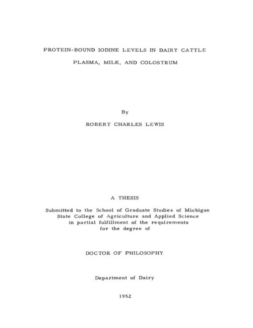 Protein-bound iodine levels in dairy cattle plasma, milk and colostrum