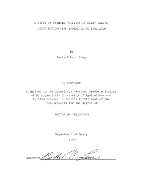 A study of thyroid activity in dairy calves using radioactive iodine as an indicator