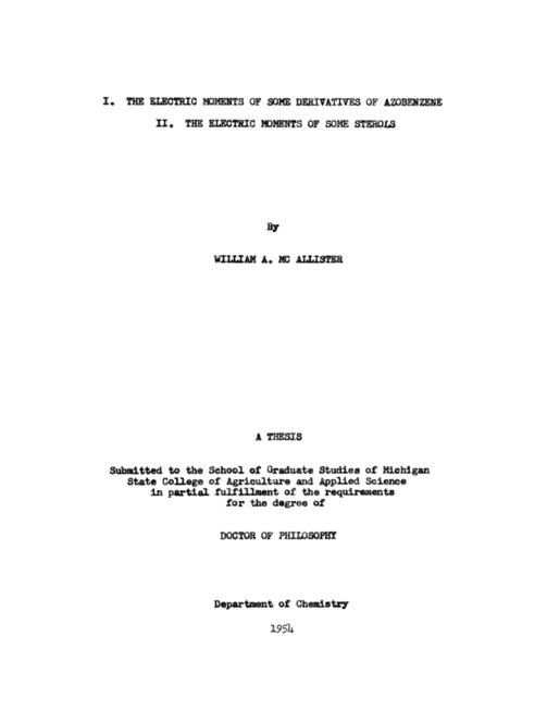 I. The electric moments of some derivatives of azobenzene. II. The electric moments of some sterols
