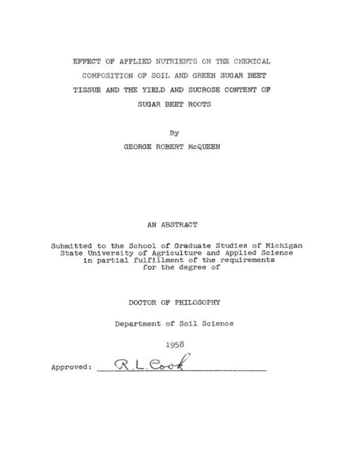 Effect of applied nutrients on the chemical composition of soil and green sugar beet tissue and the yield and sucrose content of sugar beet roots