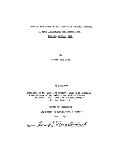 Some relationships of selected socio-economic factors to food consumption and expenditures
