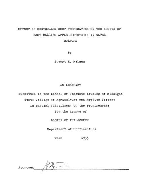 Effect of controlled root temperature on the growth of East Malling apple rootstocks in water culture