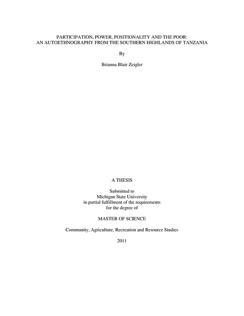 Participation, power, positionality and the poor : an autoethnography from the southern highlands of Tanzania