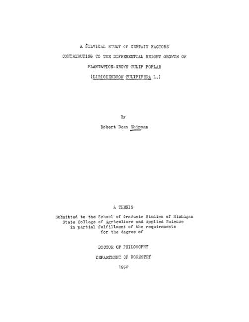 A silvical study of certain factors contributing to the differential height growth of plantation-grown tulip poplar