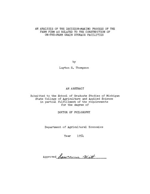 An analysis of the decision-making process of the farm firm as related to the construction of on-the-farm grain storage facilities