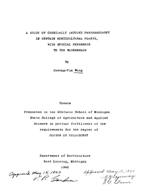 A study of chemically induced parthenocarpy in certain horticultural plants, with special reference to the watermelon
