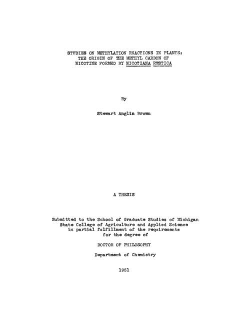 Studies on methylation reactions in plants : The origin of the methyl carbon of nicotine formed by Nicotiana rustica