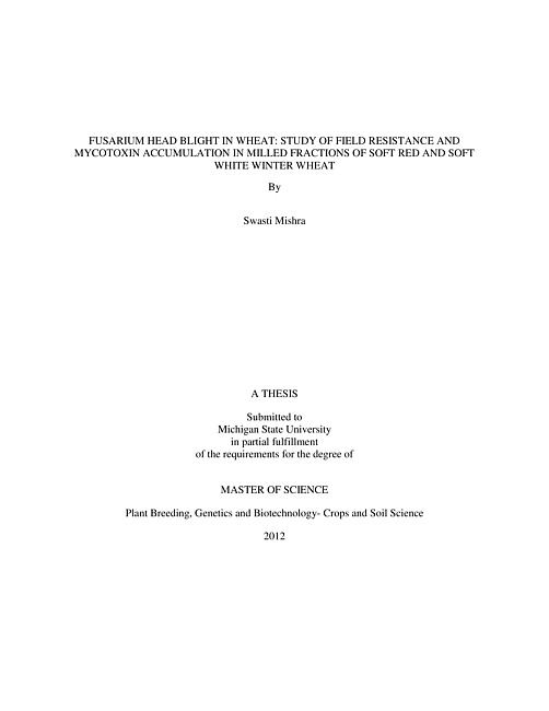 Fusarium head blight in wheat : study of field resistance and mycotoxin accumulation in milled fractions of soft red and soft white winter wheat