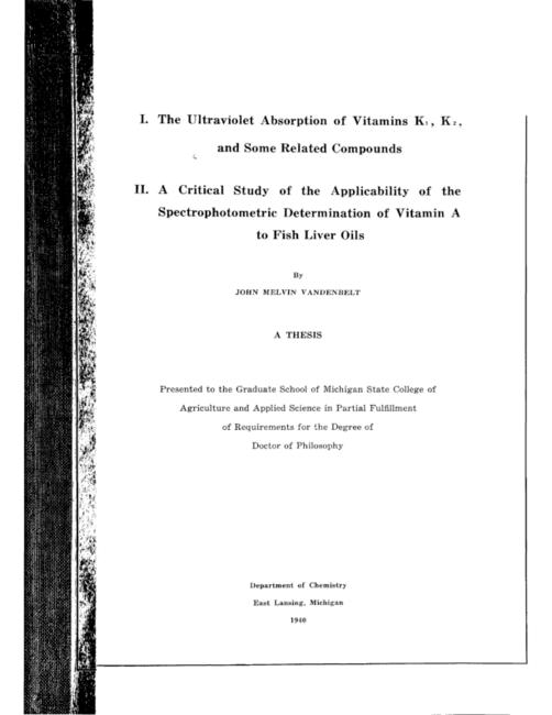 The ultraviolet absorption of vitamins K1, K2, and some related compounds : II. A critical study of the applicability of the spectrophotometric determination of vitamin A to fish liver oils