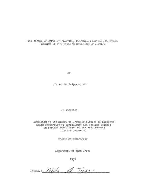The effect of depth of planting, compaction and soil moisture tension on the seedling emergence of alfalfa