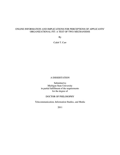 Online information and implications for perceptions of applicants' organizational fit : a test of two mechanisms