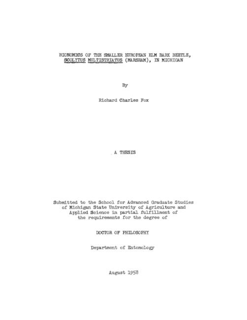 Bionomics of the smaller European elm bark beetle, Scolytus multistriatus (Marsham), in Michigan