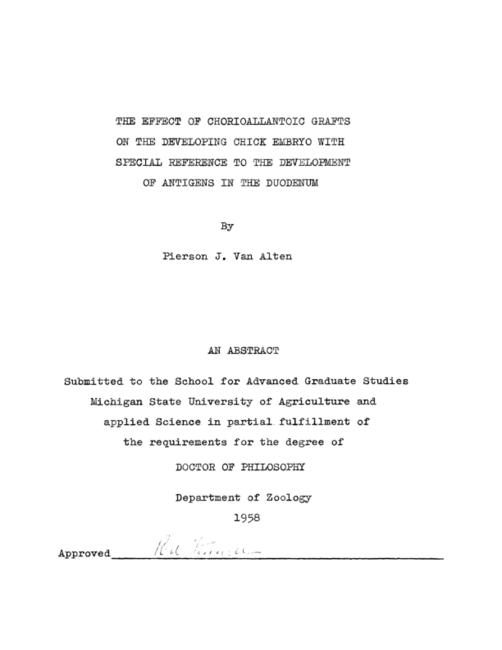 The effect of chorioallantoic grafts on the developing chick embryo with special reference to the development of anitgens in the duodenum