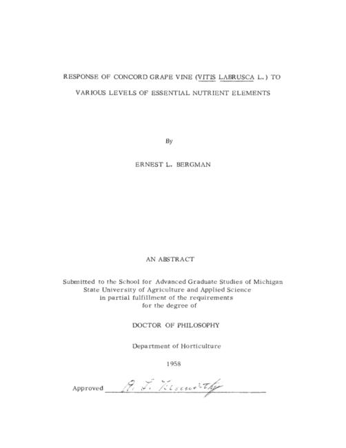 Response of concord grape vine (Vitis labrusca L.) to various levels of essential nutrient elements