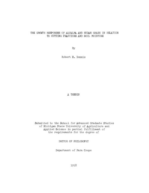 The growth responses of alfalfa and sudan grass in relation to cutting practices and soil moisture