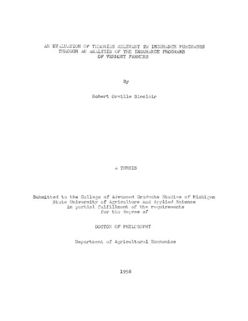 An evaluation of theories relevant to insurance purchases through an analysis of the insurance programs of Vermont farmers