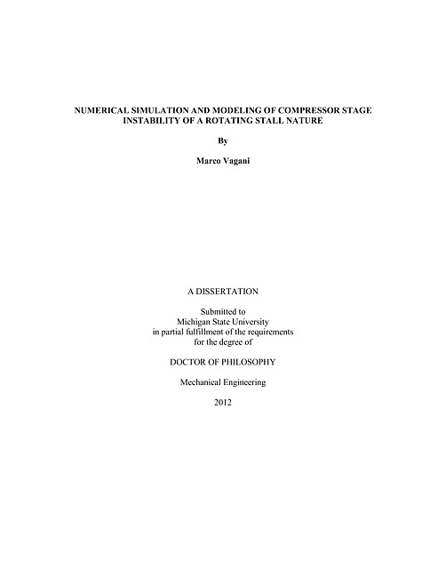 Numerical simulation and modeling of compressor stage instability of a rotating stall nature