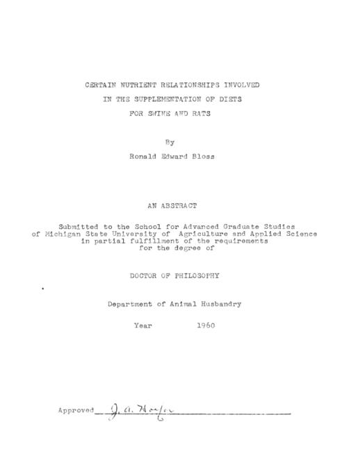 Certain nutrient relationships involved in the supplementation of diets for swine and rats
