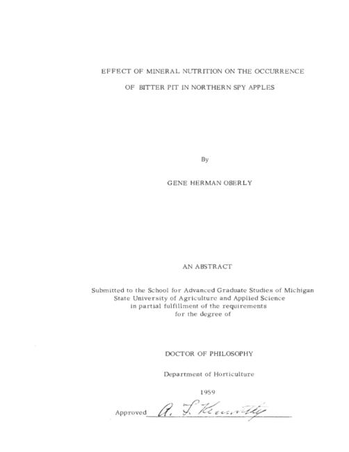 Effect of mineral nutrition on the occurrence of bitter pit in Northern Spy apples