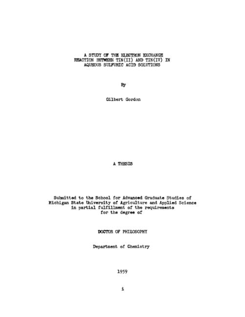 A study of the electron exchange reaction between tin (II) and tin (IV) in aqueous sulfuric acid solutions