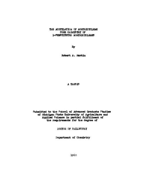 The acetylation of nortricyclene : some chemistry of 1- substituted nortricyclenes