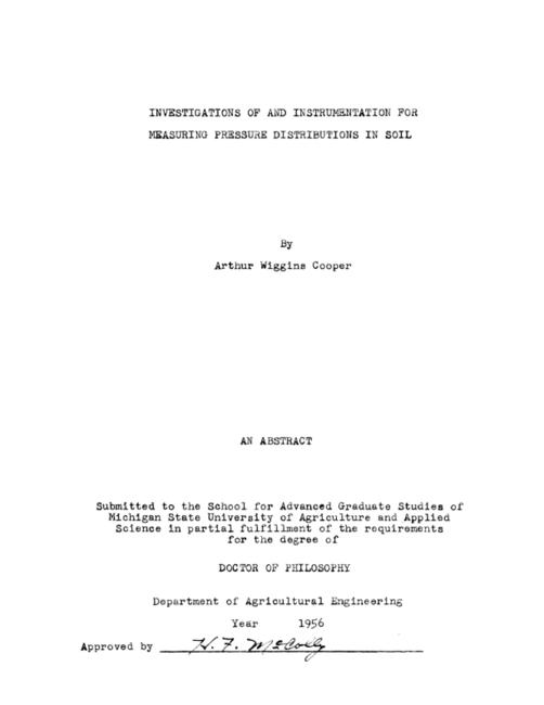Investigations of and instrumentation for measuring pressure distributions in soil