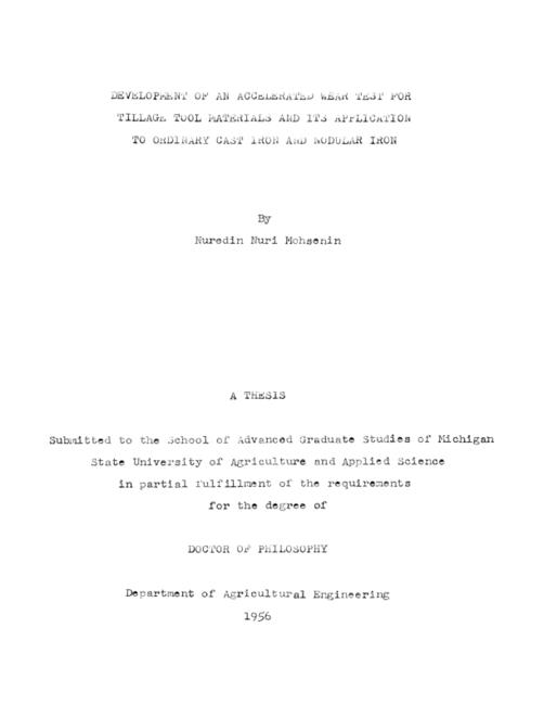Development of an accelerated wear test for tillage tool materials and its application to ordinary cast iron and nodular iron