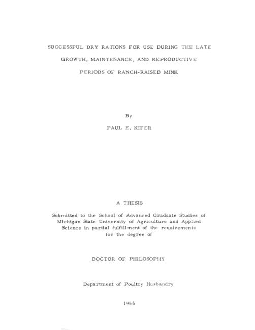 Successful dry rations for use during the late growth, maintenance, and reproductive periods of ranch-raised mink