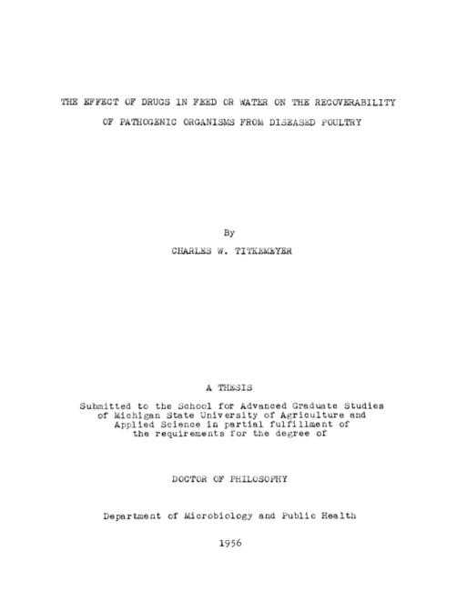 The effect of drugs in feed or water on the recoverability of pathogenic organisms from diseased poultry
