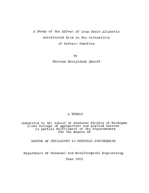 A study of the effect of long chain aliphatic substituted dyes on the wettability of certain textiles