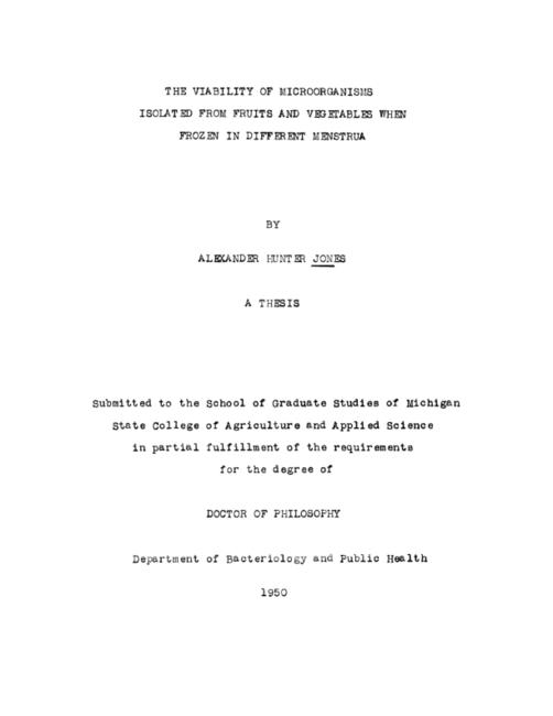 The viability of microorganisms isolated from fruits and vegetables when frozen in different menstrua