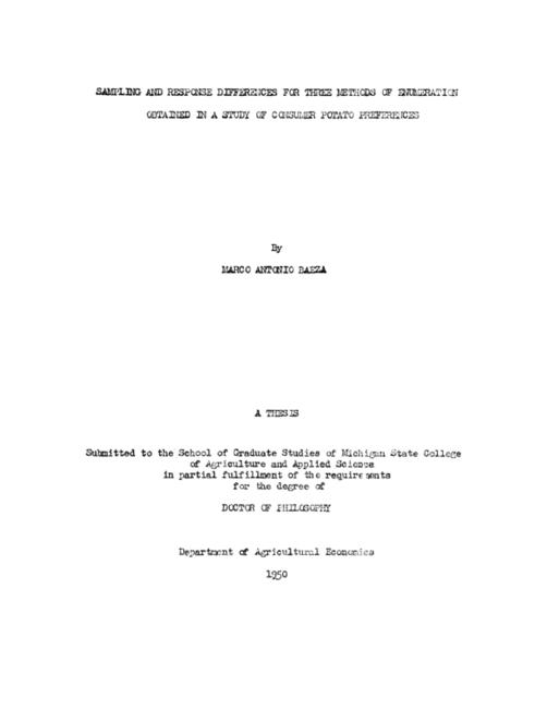 Sampling and response differences for three methods of enumeration obtained in a study of consumer potato preferences