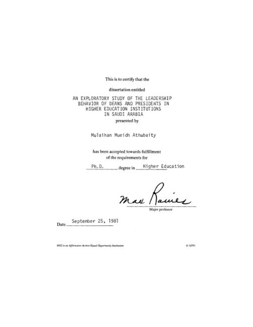 An exploratory study of the leadership behavior of deans and presidents in higher education institutions in Saudi Arabia