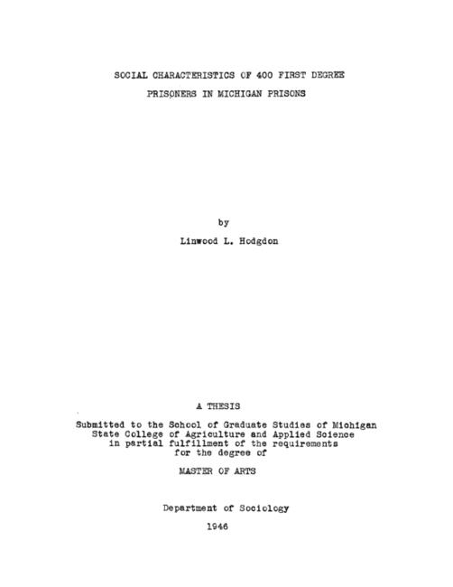 Social characteristics of 400 first degree prisoners in Michigan prisons