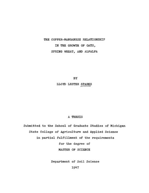 The copper-manganese relationship in the growth of oats, spring wheat, and alfalfa