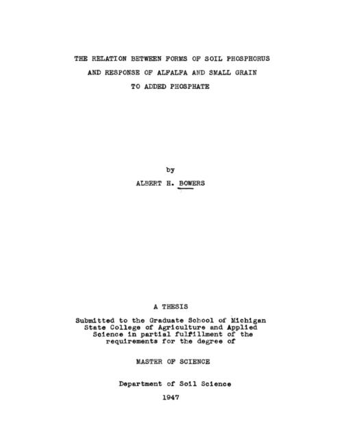 The relation between forms of soil phosphorus and response of alfalfa and small grain to added phosphate