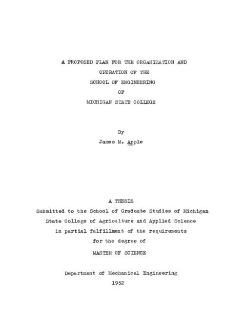 A proposed plan for the organization and operation of the School of Engineering of Michigan State College