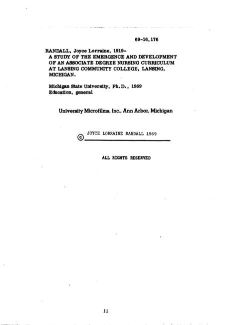 A study of the emergence and development of an associate degree nursing curriculum at Lansing Community College, Lansing, Michigan