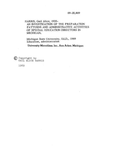 An investigation of the preparation patterns and administrative activities of special education directors in Michigan
