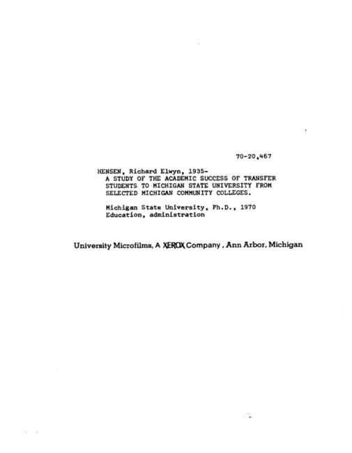 A study of the academic success of transfer students to Michigan State University from selected Michigan community colleges