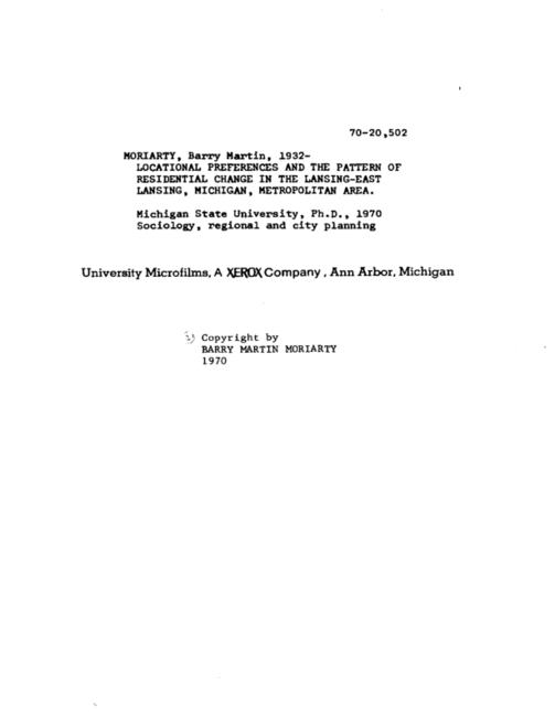 Locational preferences and the pattern of residential change in the Lansing-East Lansing, Michigan, metropolitan area
