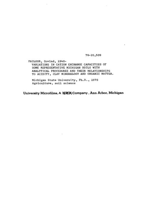 Variations in cation exchange capacities of some representative Michigan soils with analytical procedures and their relationships to acidity, clay mineralogy and organic matter