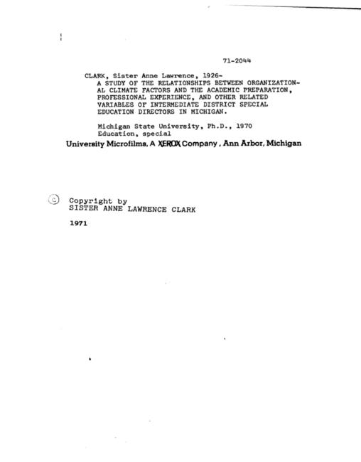 A study of the relationships between organizational climate factors and the academic preparation, professional experience, and other related variables of intermediate district special education directors in Michigan